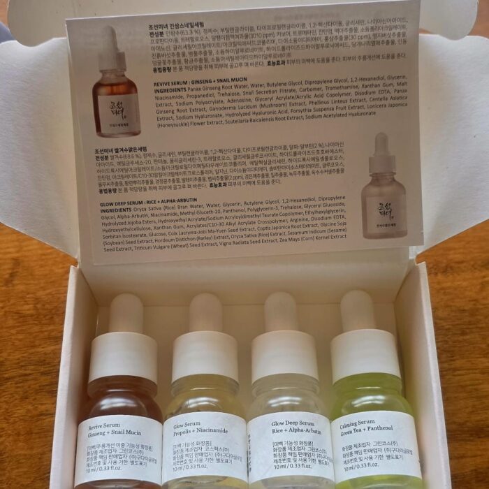 This is a 10ml mini-size set with 4 types of serums so that you can choose to use or layer them according to your skin type or skin issues. Experience a wonderful journey to find the right product for you before taking the plunge on a full-size bottle (10mlx4)