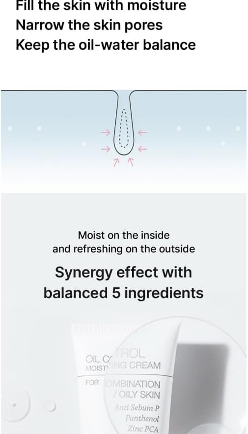 A moisturizing cream is designed to prevent excess sebum by tightening pores with the help of Zinc PCA, Anti Sebum P, and Anti Pore S. It contains key ingredients like Panthenol and 0.5% Beta Glucan, which provide deep hydration and assist in retaining moisture within the skin. The cream supports the oil-moisture balance, enhancing skin texture. Featuring a soft texture, it glides effortlessly onto the skin, allowing for quick and complete absorption without any greasiness. Additionally, it is free from artificial fragrances and colorants, making it suitable for all skin types, including sensitive skin.