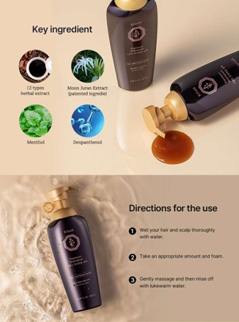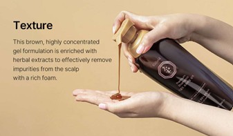 This shampoo features 12 types of directly brewed herbal extracts designed to strengthen the scalp.