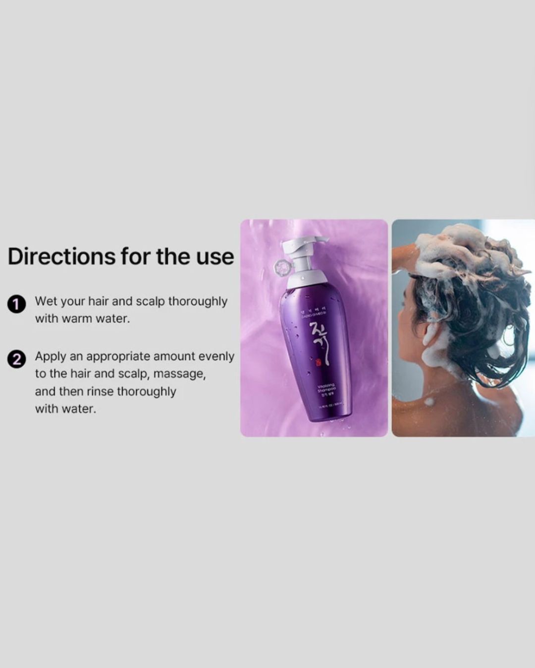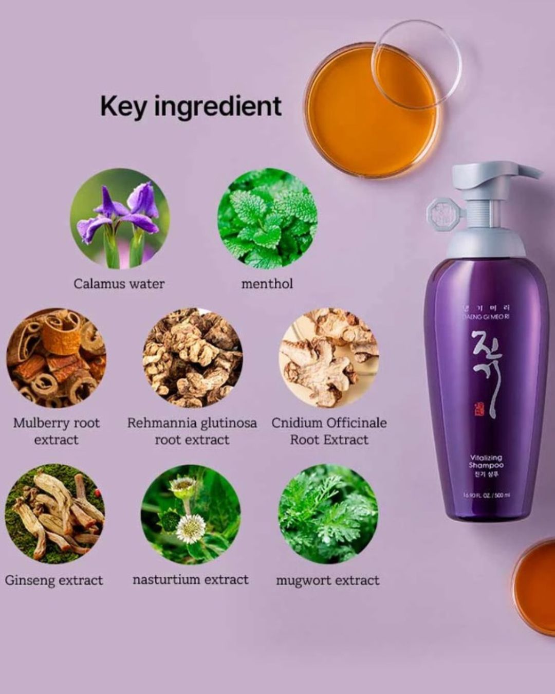 This shampoo features 21,000 ppm of Ginseng Extract, which aids in preventing hair loss while nourishing the scalp.