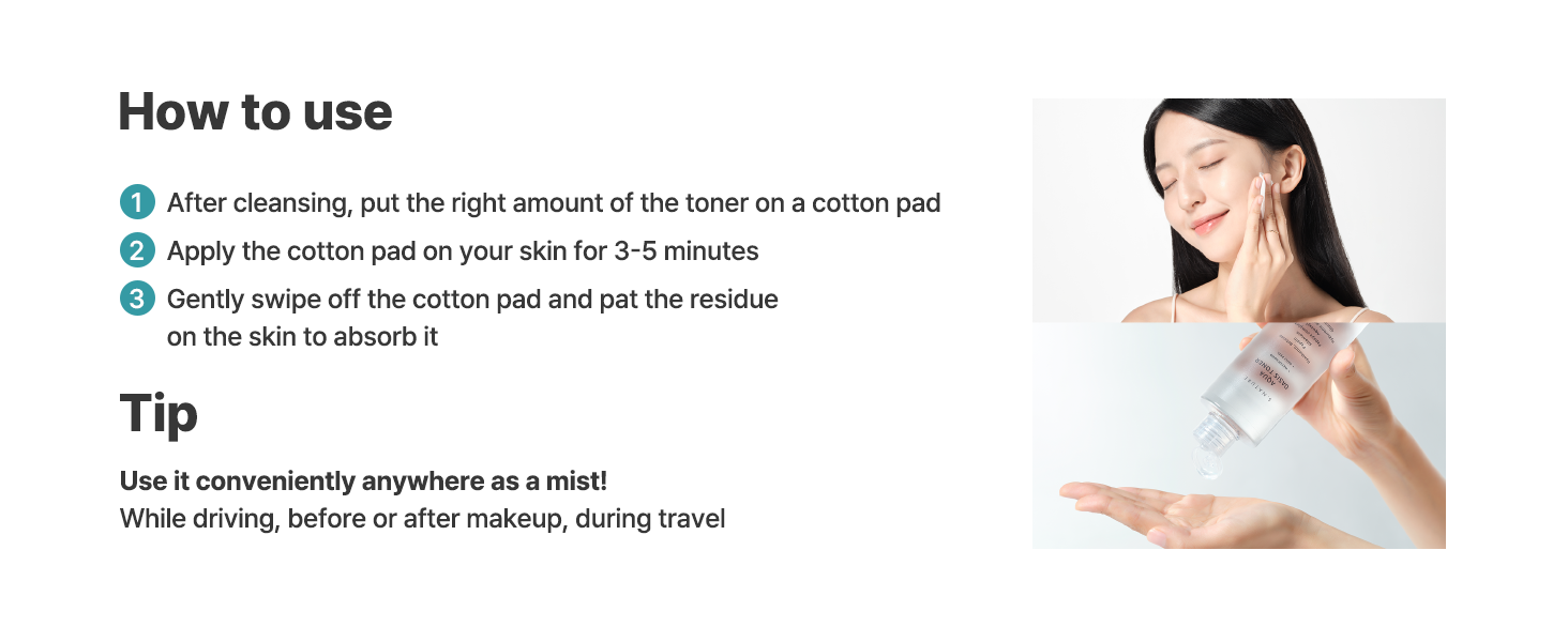 After cleansing, apply a moderate amount onto the skin and gently pat for better absorption