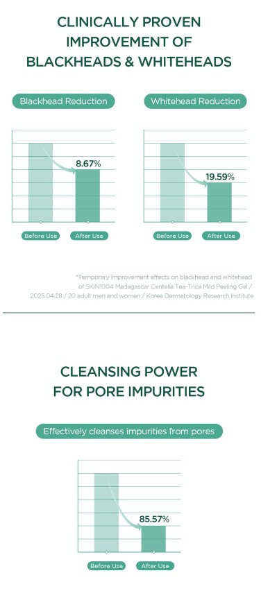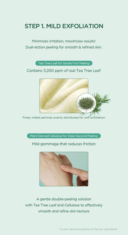 This gentle peeling gel is crafted to provide effective exfoliation by eliminating blackheads, whiteheads, and dead skin cells. It boasts a double peeling effect, thanks to the combination of Tea Tree Leaf and Cellulose, which work together to remove impurities from the skin. The gel is enriched with revitalizing ingredients like Gluconolactone and Succinic Acid, aimed at achieving a brighter complexion. For instant blackhead and whitehead removal, Salicylic Acid and Capryloyl Salicylic Acid are included to help clear the skin. Additionally, it offers deep hydration through Hyaluronic Acid, Allantoin, and Panthenol, which nourish and moisturize the skin. It has passed skin irritation tests, ensuring it is suitable for all skin types.