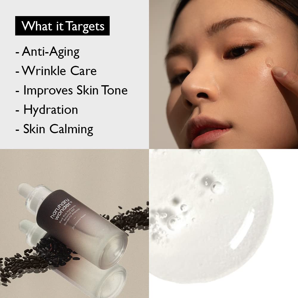Haruharu Wonder's Black Rice Hyaluronic Botanical 2GF Wonderful Ampoule uses Our Rice 2GF, a moisture-binding, skin-rejuvenating, and signaling protein, which helps support the skin's natural collagen production and is essential for keeping skin looking smooth, plump and youthful.What to Expect