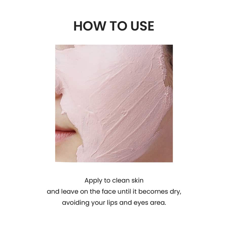 Vegan and cruelty-free pink clay mask provides an instant calming effect and sebum care.