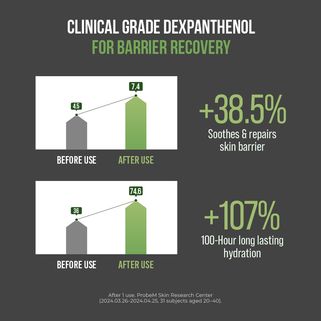 Benefits: A calming cream enriched with Dexpanthenol, designed to boost skin hydration and strengthen the skin's natural barrier while alleviating irritation and redness. Contains Madecassoside and Asiaticoside to reduce inflammation and stimulate collagen production, thereby improving overall skin elasticity. Features a refreshing texture that aids in maintaining the water-oil balance and supports the recovery of a damaged skin barrier without leaving a sticky residue. Dermatologically tested and suitable for sensitive skin.