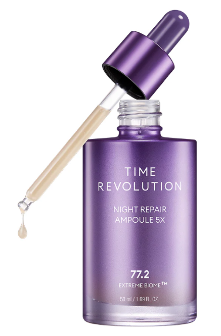 Time Revolution Night Repair Ampoule 5X is our fifth-generation leading overnight probiotic treatment. This ultra-nourishing serum is infused with 77.2% Extreme Biome, formulated with 10 potent probiotics for rapid results. The ampoule helps strengthen skin, improve elasticity and radiance, lifts, moisturizes, and brightens skin overnight. Ingredients are fermented with the unique EXTREME FERMENT α™ Method, a special three-step fermentation technology that steadily delivers an extreme boost of active ingredients to your skin.