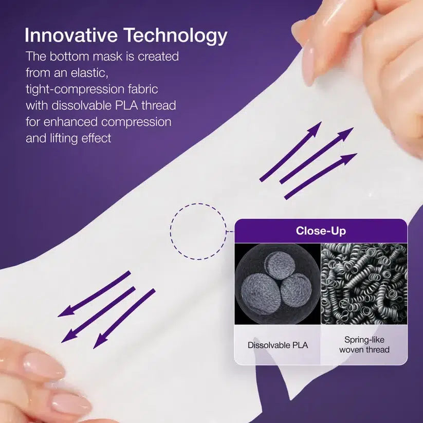 The Numbuzin No.9 NAD+ Bio Lifting-sil Full Face Mask is a dual-section firming sheet mask designed to help redefine facial contours, improve skin elasticity and enhance overall skin texture. The top mask is infused with NAD+ BIO capsules to revitalise the skin, while the bottom mask contains dissolvable PLA threads that target the jawline and promote a more plump and radiant complexion. The adjustable lifting band further tightens and sculpts the face. Size: 1 Mask