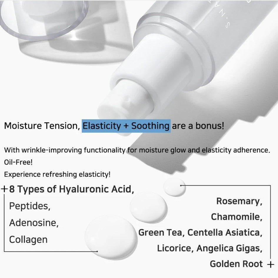 The comprehensive gel-essence is designed to offer a range of benefits for dry and aging skin. It is formulated with a blend of eight types of Hyaluronic Acids, Peptides, Adenosine, and Collagen, all in ultra-fine molecular sizes, to enhance skin elasticity and deeply hydrate dry skin, providing a lifting effect. In addition to replenishing moisture in weak and stressed skin, it promotes a radiant and clear complexion. The inclusion of the patented ingredient MultiEX BSASM helps reinforce the skin barrier and soothe irritated areas. Furthermore, this gel-essence effectively aids in minimizing wrinkle formation, contributing to a youthful-looking appearance.