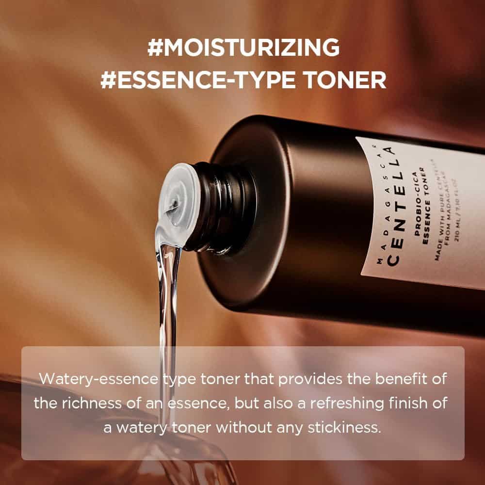 Product Features Fermented Madagascan Centella Asiatica: This ingredient, along with specially formulated Probio-cica and TECA, delivers enhanced calming effects. Ceramide NP: Similar in structure to the skin barrier, this ingredient, combined with high-quality cica, helps by improving moisture absorption and repairing damaged areas. Hyaluronic Acid: Formulated with five different sizes of hyaluronic acid molecules, this product layers moisture into the skin from the inside out. Watery-Essence Toner: Enjoy the richness of an essence combined with the refreshing finish of a watery toner. Safety Assurance: Successfully completed skin irritation tests, ensuring safety for all skin types, including sensitive skin. This toner features a watery-essence texture that refreshes and hydrates the skin without any stickiness, making it suitable for everyone.