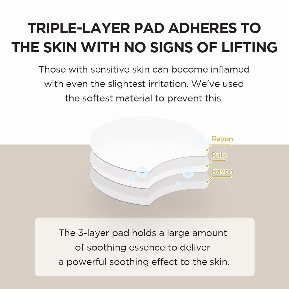An essence-rich toner pad with Centella and Panthenol soothes and hydrates the skin - Offers much more convenient use than facial sheet mask - Gentle calming pad composed of only 10 EWG green-grade ingredients that are essential for soothing irritateed skin - Triple layered pads contains more essence and strongly adheres to the skin - Large size pads makes it easy to tend large areas of the face at once, with less hassle- Crescent moon shaped pad tailored for easy application around the curvatures of the eyes and nose area